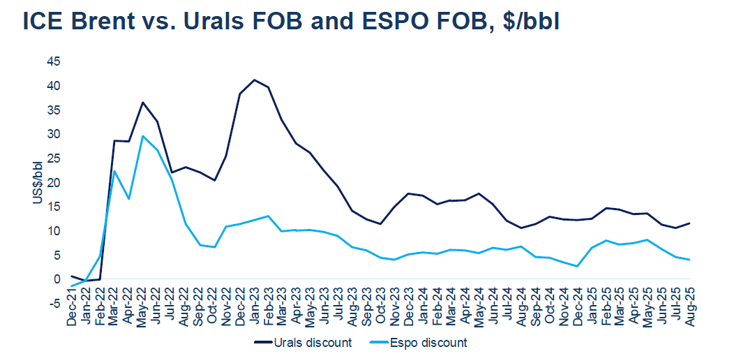 2025. gada oktobrī ASV Ārvalstu aktīvu kontroles birojs (OFAC) noteica jaunas sankcijas pret Rosneft un Lukoil – diviem lielākajiem Krievijas naftas uzņēmumiem. Kā norāda B. Hilgenstoks, sākotnējā ietekme būs būtiska, jo OFAC skaidri signalizē par sekundāro sankciju risku ārvalstu bankām. Lai saglabātu eksporta apjomus, Krievijai nāksies piedāvāt vēl lielākas atlaides jau tā zemajai naftas cenai.