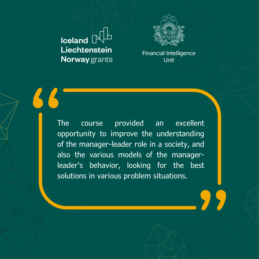 More information about the project " Improvement of Employee Knowledge in Combating Money Laundering in Latvia" (No.EEZ/FID/2021/6) here. More detailed information about the EEA financial instrument: https://eeagrants.lv/en/all-programms/.